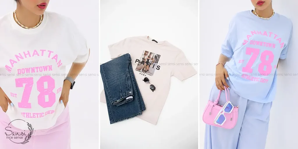میتوان تیشرت چاپی را با شلوار جین، دامن کوتاه یا میدی، شلوارک و حتی زیر ژاکت یا مانتو پوشید. اضافه کردن کفش و اکسسوری مناسب، استایل شما را کامل و هماهنگ میکند.