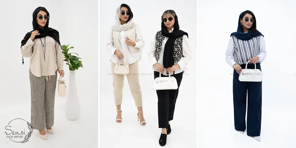 - تناسب قد شومیز و شلوار: اگر شومیز کوتاه است، شلوارهای گشاد انتخاب مناسبیاند. برای شومیزهای بلند، شلوارهای راسته یا جذب پیشنهاد میشود.